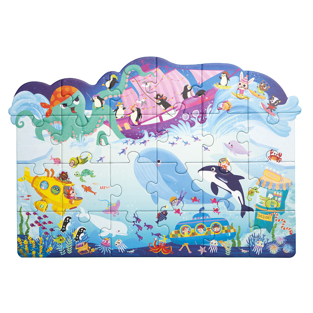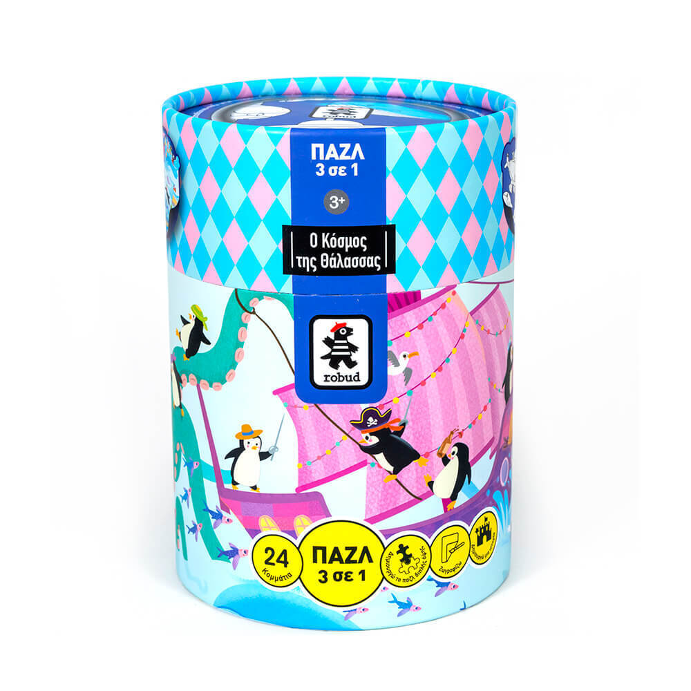 Διασκέδασε, τοποθετώντας πρώτα στη θέση τους όλα τα πλάσματα της θάλασσας στο παζλ και στη συνέχεια εξάσκησε τις ικανότητές σου σε δημιουργικές δραστηριότητες! Τα μικρά παιδιά αφού ενώσουν τα κομμάτια και δημιουργήσουν την εικόνα μπορούν να χρωματίσουν την πίσω όψη του παζλ, καλλιεργώντας με τον τρόπο αυτό τη δημιουργικότητα και τις καλλιτεχνικές τους δεξιότητες. Η διασκέδαση όμως δε σταματά εκεί! Χρησιμοποίησε τη φαντασία σου και με τις εικόνες που βλέπεις, δημιούργησε τη δική σου ευφάνταστη ιστορία με ήρωες τους πιγκουίνους, το μεγάλο πράσινο χταπόδι και τα υπόλοιπα πλάσματα της θάλασσας.